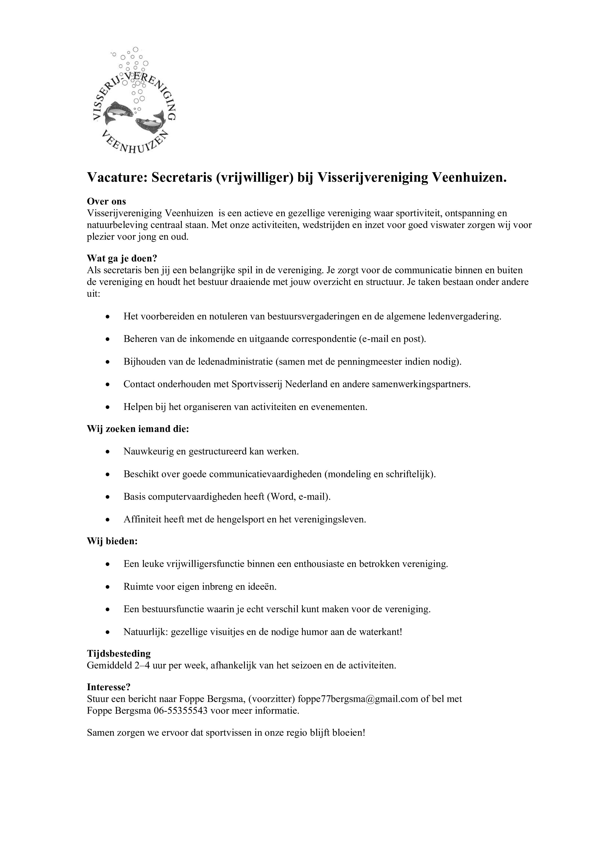 Ingaande 1 januari 2026 is de functie van secretaris binnen onze HSV vacant. Zie hierna de vacature.